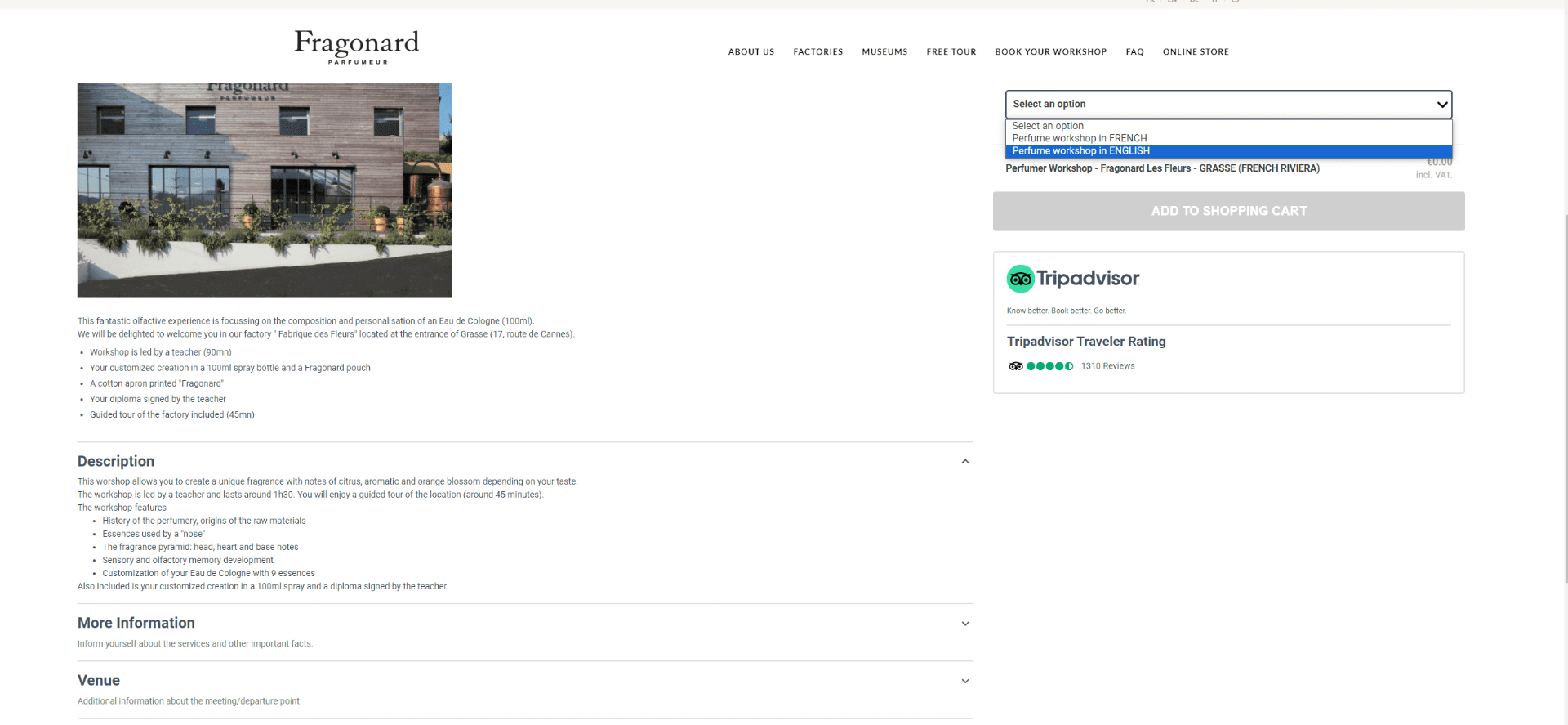 This unique experience at Fragonard's "Fabrique des Fleurs" deeply connects visitors with the art of perfume-making. By engaging in the creation of their own scent, participants gain an intimate understanding of a perfume's origin and production process. This hands-on approach not only enhances customer engagement but also strengthens their connection with Fragonard's products, potentially increasing their desire to purchase and cherish these fragrances. This workshop is a perfect blend of education, creativity, and brand experience.